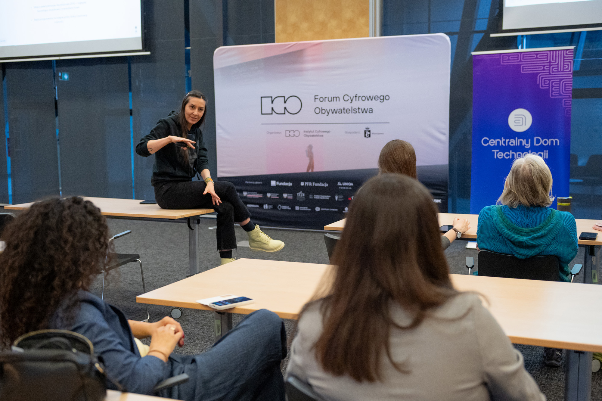 Pierwsze w historii Forum Cyfrowego Obywatelstwa odbyło się w dniach 17-18 marca w Centrum Nauki Kopernik w Warszawie. Wydarzenie zorganizowane przez Fundację „Instytut Cyfrowego Obywatelstwa” zgromadziło ekspertki i ekspertów z obszarów nauki, edukacji, administracji publicznej i biznesu. Przez dwa dni uczestnicy debatowali o wpływie środowiska cyfrowego na społeczeństwo – od higieny cyfrowej i dezinformacji, po zdrowie psychiczne i regulacje prawne. Fundacja PFR pojawiła się na tym wydarzeniu w roli partnera, gdzie prezentowaliśmy naszą ścieżką edukacyjną: Cyberbezpieczeństwo, realizowaną przez Centralny Dom Technologii.