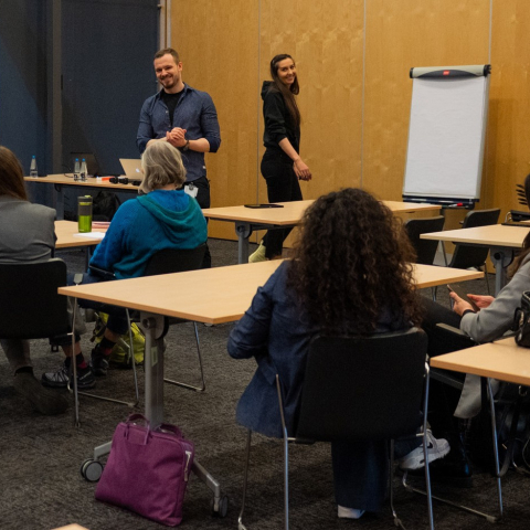 Drugi dzień Forum odbył się pod znakiem warsztatów, a wśród punktów programu znalazły się też zajęcia prowadzone przez edukatorów CDT – Annę Andrychowską oraz Zbigniewa Bujaka. Spotkanie z gronem pedagogicznym miało na celu rozłożyć na czynniki pierwsze temat prywatności i cyberbezpieczeństwa tak, aby nauczycielki i nauczyciele mogli potem przeprowadzić podobne zajęcia ze swoimi uczniami. Uczestnicy uczyli się przez działanie, dyskusję i wspólne analizowanie realnych przypadków.